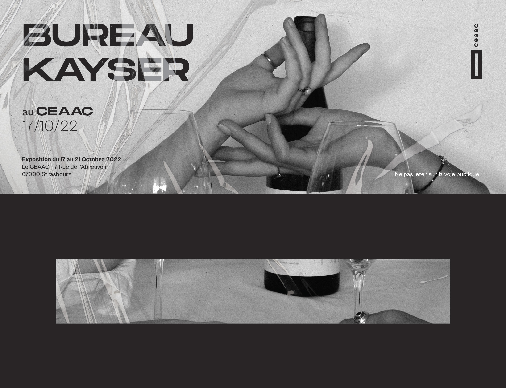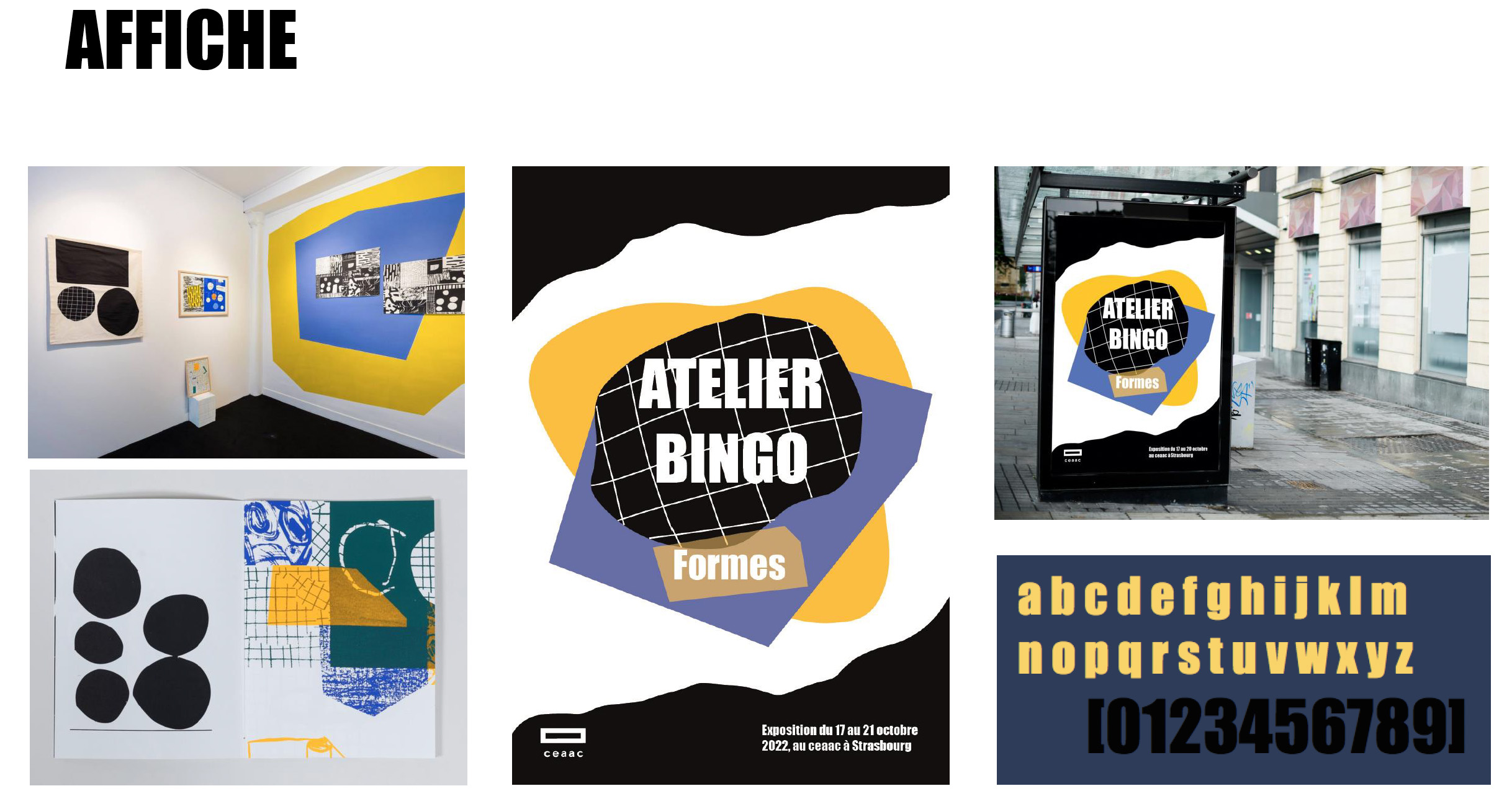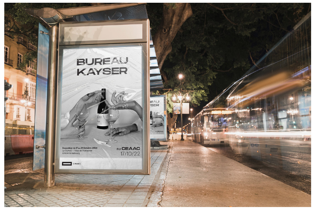 Les étudiants doivent concevoir l’identité visuelle et les supports de communication d’une exposition fictive au CEAAC (Strasbourg), consacrée au travail d’un graphiste ou collectif. Le projet inclut :