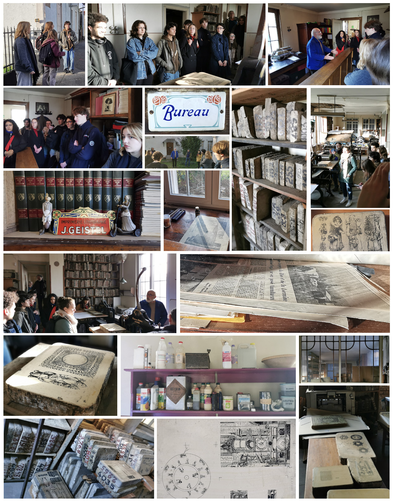 La classe de MAD 2 GRAPHISME s’est rendue, dans le cadre du cours de « Technique et Savoir-Faire », avec Mme PULVERMULLER (UE11, EC11.1), sur le site de l’ancienne imprimerie GEISTEL (Fonds Arts et Graphie Geistel, 48 rue du Gazon, 67200 Strasbourg-Cronenbourg). Cette visite a permis aux étudiants de découvrir le procédé de la lithographie grâce à une ouverture exceptionnelle qui leur a été accordée.