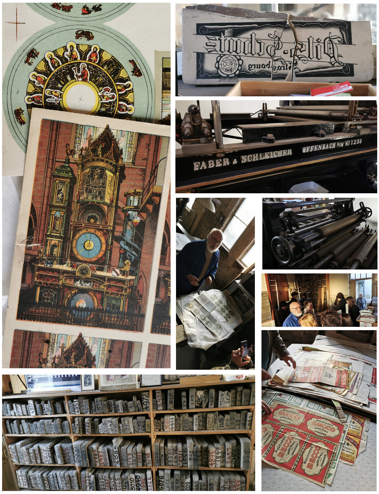 Les lieux étaient restés intacts et imprégnés de l’ambiance de travail. En effet, depuis la fermeture de cette imprimerie en 1952, personne n’y était retourné. Nous avons ainsi eu l’immense privilège d’être les premiers à admirer les pierres lithographiques. Une machine a même été mise en action, imprimant de manière régulière un dessin d’art, permettant de finaliser de comprendre le procédé et d’écouter le son de cette imposante presse et s’imaginer le lieu «en action».